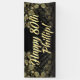 Pretty gold and black festive personalised birthday party banner wall decoration. Outstanding birthday banner custom printed with the guest of honour men or women's name! Black and Gold fairy dust, bokeh and rays of light to celebrate the guest of honour's special milestone birthday!