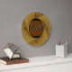 A striking design of a gold black striped border with a circular centre in warm brown.Rich red numerals complete this special clock design.Minimalist but interesting, this would make a unique gift for your loved one.
