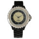 This pretty watch has a printed background swirl pattern in gold that looks like brocade. A black circular frame makes the light gold numbers easy to read. Your three letter monogram in black adds a personal touch. Elegant!