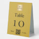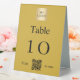 Gold background, black text. Personalise and add your business logo, and add your website link to the QR code.
