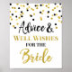 Advice and well wishes for the bride sign for bridal shower in a black and gold confetti pattern.