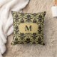 This elegant pillow features a pretty black damask pattern over an antique gold colour. Your monogram in black is placed inside a dotted circle on a banner of matching gold. Beautiful, formal, and distinctive. The back side of the pillow has the same pretty black damask pattern over antique gold, but is without the banner and monogram.