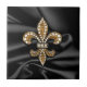 Gold Black Fleur De Lis Satin Jewel Ceramic Tile
