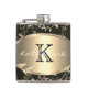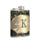 Gold Black Floral Monogram Name Personalised Hip Flask