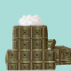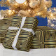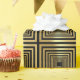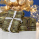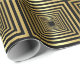 Decorative and elegant black and gold gift wrapping paper featuring shiny gold squares intricately linked to produce a captivating 3D illusion.