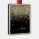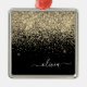 Gold Black Girly Glitter Sparkle Monogram Name Metal Ornament
