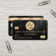 This is the perfect logo business card for a trendy, stylish, girly, and modern businesswoman. This design features elegant but glamourous and chic black sparkly glitter drips and a brushed metallic background with faux gold accents designed in the cute, unique, and clever style of a credit card. It's the perfect way to attract customers and promote your business.