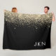 Gold Black Glitter Monogram Girly Initials Fleece Blanket