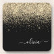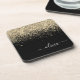 Gold Black Glitter Script Monogram Girly Name Coaster