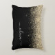 Gold Black Glitter Script Monogram Girly Name Decorative Cushion