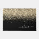 Gold Black Glitter Script Monogram Girly Name Doormat