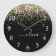 Gold Black Glitter Script Monogram Girly Name Large Clock