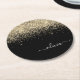 Gold Black Glitter Script Monogram Girly Name Round Paper Coaster