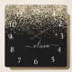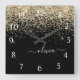 Gold Black Glitter Script Monogram Girly Name Square Wall Clock