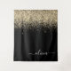 Gold Black Glitter Script Monogram Girly Name Tapestry