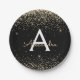 Gold Black Glitter Sparkle Monogram Birthday Paper Plate