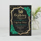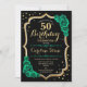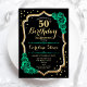 50th Birthday Party Invitation. Elegant floral emerald green design with faux glitter gold, roses and script font. Perfect for a stylish womens bday celebration. Can be customised for any age! Printed Zazzle invitations or instant download digital printable template.