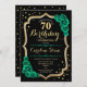 70th Birthday Party Invitation. Elegant floral emerald green design with faux glitter gold, roses and script font. Perfect for a stylish womens bday celebration. Can be customised for any age! Printed Zazzle invitations or instant download digital printable template.