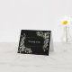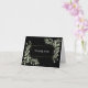 Soft spring leaves wedding thank you card, featuring delicate watercolour leaves framing your thank you message set in an elegant text on a chic black background. Designed by Thisisnotme©