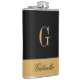 The flask itself is fine. It’s a cheap flask, obviously bought in bulk, however am prepared to overlook that. Given that it is a personalized item, I would have liked to have seen gift boxing instead of the generic packaging. Terrible printing, and/or quality. It’s a cheap, tacky vinyl. It is not cut straight and is also applied in a way that it is overhanging the bottom, causing the glue to catch on items and it will eventually roll and tear, damaging the wrap.