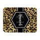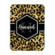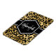 Chic gold and black leopard print flexible magnet with a custom name and monogram template. A cute and trendy safari animal print pattern background topped with your own bit of personalisation.