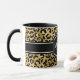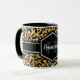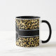 Chic gold and black leopard print mug with a custom name and monogram template. A cute and trendy safari animal print pattern background topped with your own bit of personalisation.