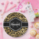 Chic gold and black leopard print paper plate with a custom name and monogram template. A cute and trendy safari animal print pattern background topped with your own bit of personalisation.