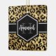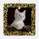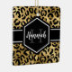Chic gold and black leopard print square ceramic ornament with a custom name and monogram template on one side and a photo template on the other side. A cute and trendy safari animal print pattern background topped with your own bit of personalisation.