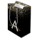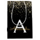 Gold Black Luxury Glitter Sparkle Monogram Medium Gift Bag