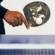 Gold Black Marble Swirl Monogram & Name Overlay Ping Pong Paddle