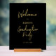 Welcome your guest with this modern graduation welcome sign. This sign features a simple script "Welcome to Graduation Party" in gold & black colour theme. You can customise the name and the date. Matching invitations and party supplies are available at my shop BaraBomDesign.