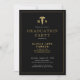 RN caduceus simple elegant typography nurse grad party invitation with a simple minimal frame in faux gold and black. Easy to personalise with your graduate celebration details and photo on both sides.