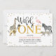 Gold Black Pink Wild One Safari Animals Birthday Invitation