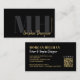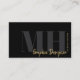 Black Professional Simple Modern Monogram Business Card. You can adapt this design to fit any business—makeup artist, lash specialist, hair stylist, consultant, marketer, and more! Both sides feature a sleek black background with a mix of dark grey, gold, and white fonts and accents for a bold yet elegant contrast. The typography combines classic and bold styles with an elegant script font for key details, giving it a refined and modern feel. The back has space for a white QR code to easily connect customers to your website, with coordinating gold and white social media icons above it (you can remove any you don’t want). This card is chic, professional, and versatile, with colours that can be fully customised to fit your brand. The side name on the front is designed to work with most initials, but adjustments can be made in the full editor if needed.