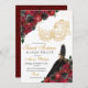 Red Black & Gold Floral Masquerade Sweet Sixteen Birthday Invitation