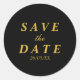 Gold & black save the date classic round sticker