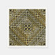 A shining golden Celtic style knotwork of interwoven square and triangle shapes in a pattern on a black background.