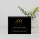 Gold & Black Surprise Birthday Party Foil Postcard Invitation by Eugene Designs. Send these minimalist black and gold invitations and start your surprise party in style! On the front, in a stylish hand-written style script is the text "shhh..." in gold foil.