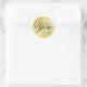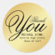 Thank you is written in large black letters in an elegant and ornate script. The graduate's name, high school and graduation year are written below in simple block letters. This makes them easy to read and customise. You can also change the colour of the text. This is a perfect graduation sticker to use as an envelope seal on thank you notes. Elegant gold graduation sticker.