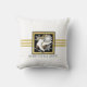 The design features a pair of ice skates over a snowflake crest with faux gold glitter, black, and white background. This elegant winter sports design serves as a cool modern and unique throw pillow with personalised text for figure skater, ice dancer, speed skater, and more!