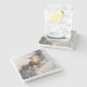 The coasters are gorgeous, a quality feel and heavy weight. They look like a precious archeological find. A rustic stone juxtaposed with a modern floral black and white print. I like the way the print goes slightly imperfect on the cut stone edges giving them a kind-of natural beauty.