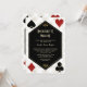 Elegant Casino Royale and Art Deco 20s themed card design. It features vintage art deco style, faux gold frame with gold Fleur-de-lis, playing cards suits (simulating playing cards), on gold white Art Deco pattern background. Use Personalise tool to add your information. More ideas in my Casino Bachelorette Collection.