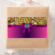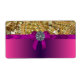 PERSONALIZE this stylish elegant sparkling metallic gold bling beaded and pearl sequined pattern & magenta purple pink plain background colour & ribbon and bow, with your own text, name or monogram, initials .