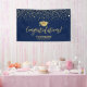 Celebrate your special day with this stylish graduation banner. This banner design features chic gold typography "Congratulations!" and a graduation cap on a navy blue background. You can personalise the text and the photo. More party supplies and stationeries are available at my shop BaraBomDesign.