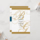 Gold Blue Elegant Script Monogram Wedding Invitation