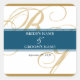 Gold Blue Elegant Script Monogram Wedding Square Sticker