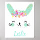 Gold Floral Rabbit face Nursery Poster Custom Name