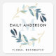 GOLD BLUE FOLIAGE WREATH PROFESSIONAL MONOGRAM SQUARE STICKER
