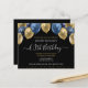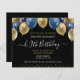 Elegant faux blue and gold glitter balloons on the top border. All text is adjustable and easy to change for your own party needs. Great elegant save the date birthday party template design. any year, age can be changed. Elegant simple modern stylish typography