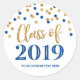 Gold Blue Glitter Confetti Graduation 2019 Classic Round Sticker